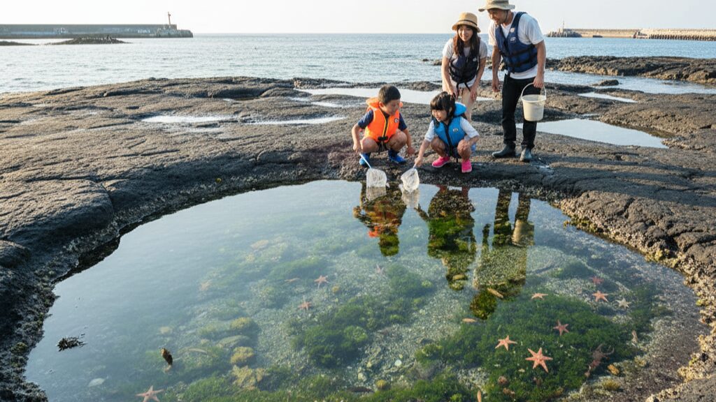 楽しい磯遊びですが、安全対策は万全に。濡れた岩場は非常に滑りやすいため、グリップ力の高いマリンシューズやフェルトスパイクブーツの着用は必須です。また、お子様には万が一に備え、必ずライフジャケットを着用させてください。夢中になっていると時間を忘れがちですが、潮が満ち始めるとあっという間に帰路が断たれる危険性があります。常に潮の動きと時間に注意を払い、早めの撤収を心がけましょう。