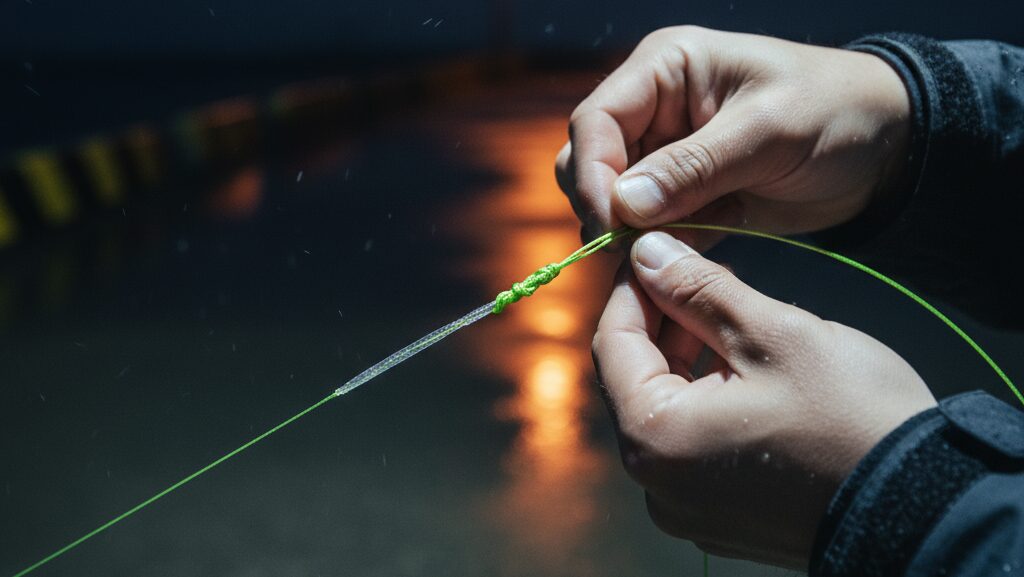 どんなに良いラインを揃えても、PEラインとリーダーを結ぶ「ノット」が不完全では意味がありません。FGノットやPRノットなど、プロも多用する強力なノットは確かに存在しますが、手順が非常に複雑で、習得にはかなりの練習が必要です。特に、視界の悪い夜間の釣り場で、冷たい風に吹かれながら初心者が完璧に結ぶのは至難の業です。