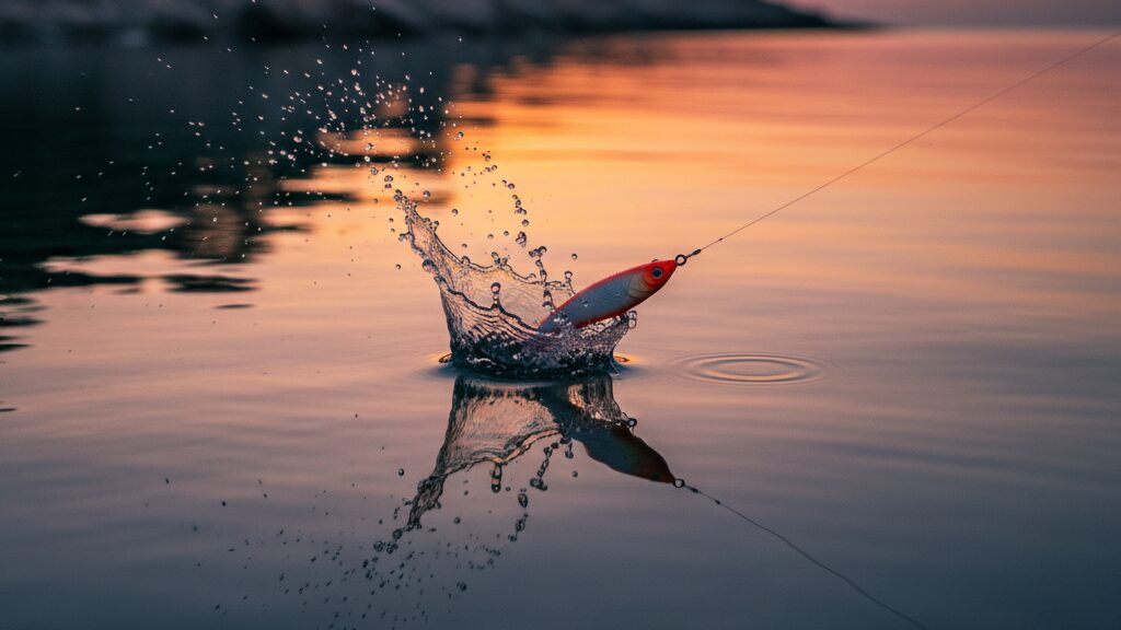 ナイロンリーダーが特にその真価を発揮するのは、ペンシルベイトやポッパーといったプラグ系ルアーで水面付近を攻略するトップウォーターの釣りです。比重が軽く水に沈みにくいため、ルアー本来のアクションを妨げることなく、表層でのナチュラルな演出をサポートします。