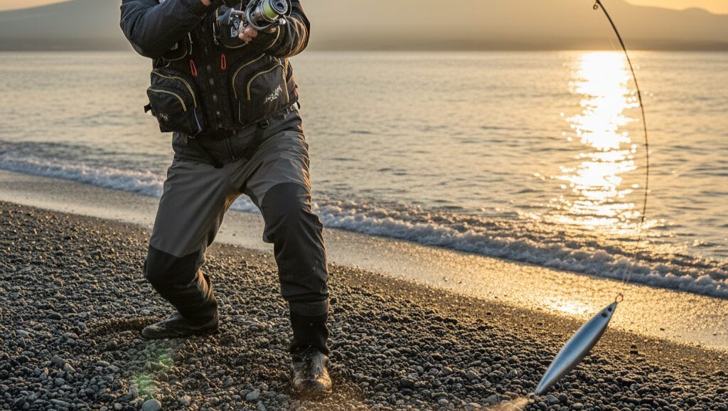 片浜のような急深サーフで釣果を確実に伸ばすためには、やはり「飛距離」が大きな武器になります。どれだけ良いルアーを使っていても、魚が回遊している沖の潮目や、ブレイクライン(深浅の境界線)の向こう側まで届かなければ、勝負の土俵に上がることすらできません。