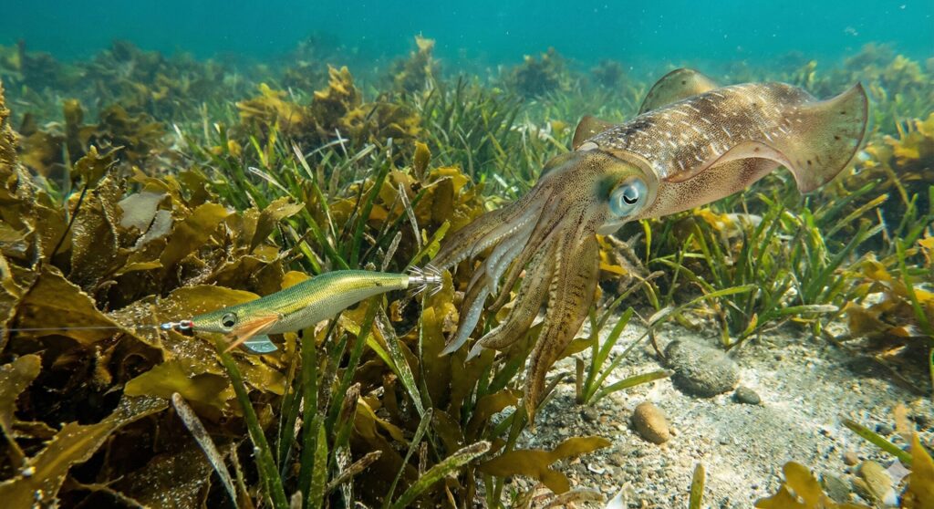 春の大型アオリイカ(親イカ)を狙う場合、重さの選び方は少しシビアになります。春イカは産卵のために浅場(藻場)に入ってくることが多いのですが、ここで重たいエギを使うとすぐに藻に突っ込んでしまい、釣りになりません。
