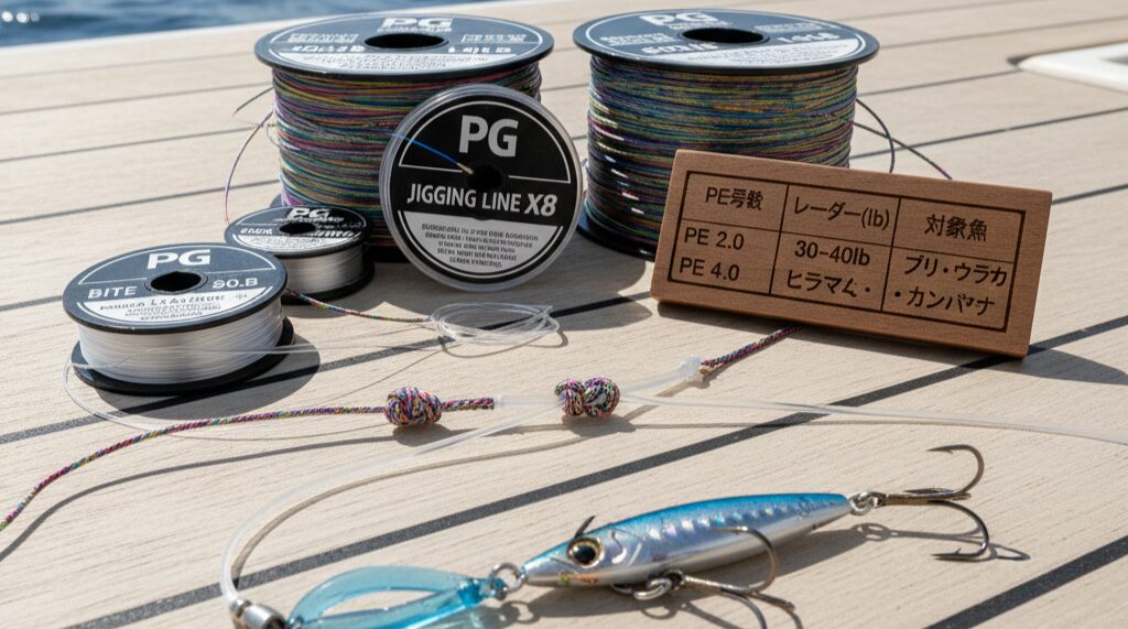 | PE 1.5号 | 25-30lb | 約6-8号 | 近海ジギング(小型青物、根魚) |