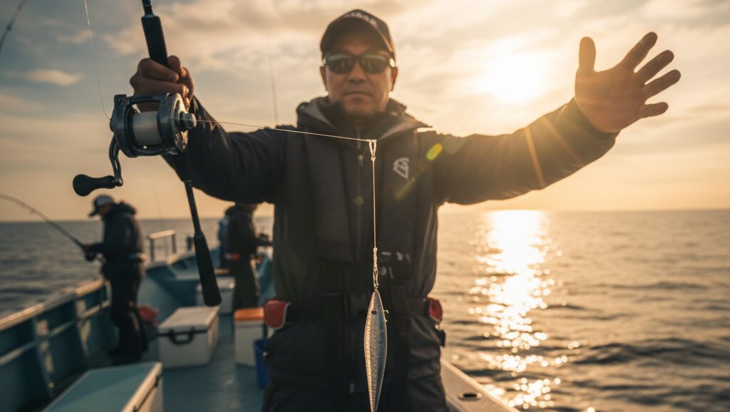ラインシステムやノットの強度は、アングラー自身の安全にも直結します。特にロングリーダーでノットを巻き込む際は、キャスト切れなどでジグが飛んでくる危険性もゼロではありません。結束方法や強度の確認は、ご自身の責任において、タックルバランスを考慮した上で慎重に行ってください。また、船上では常に安全に配慮し、ライフジャケットの着用など、基本ルールを守ってください。