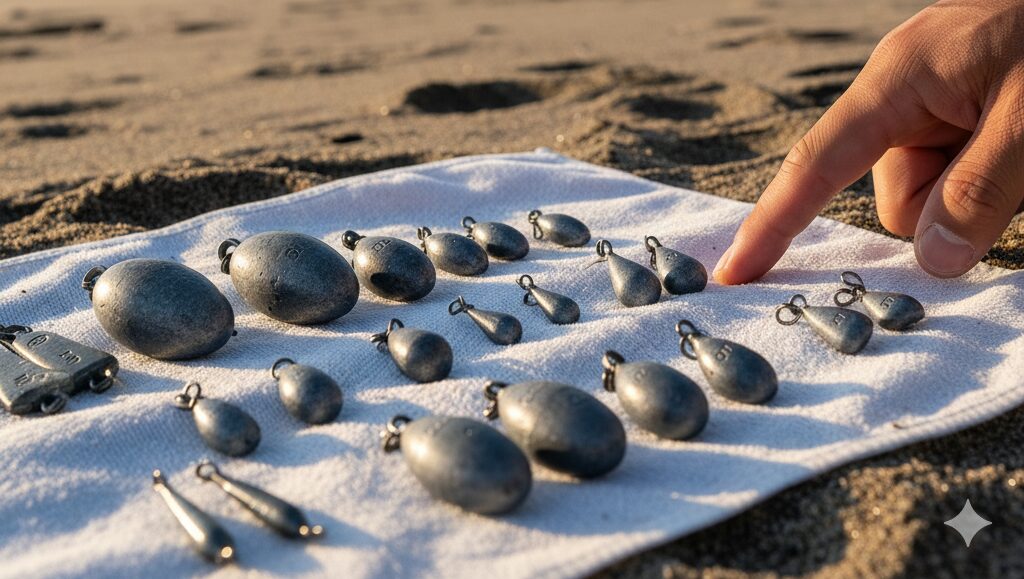 ちょい投げ釣りで使う錘(オモリ)の重さは、釣果を左右する重要な要素です。錘の選択は、「使用する竿の硬さ」「釣り場の水深や潮流」「狙いたい距離」という3つの要素によって決まります。キス釣りで一般的に使われる7~9フィートクラスのルアーロッド(エギングロッドやシーバスロッドなど)を基準に考えると、誰でも扱いやすい重さの目安が分かります。