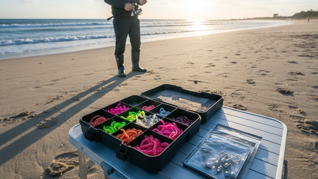 ワームでキスを釣る上で「最強」と言われるセッティングは、「集魚成分を含んだワーム」と「状況に適した仕掛け」の組み合わせによって生まれます。特に、化学の力で魚を寄せる匂いや味が付いたワームは、時として生エサに匹敵する、あるいはそれ以上の釣果をもたらすことがあります。