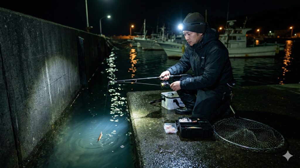 夜釣りの最大のメリットは、タコがエサに対して非常に積極的になる点にあります。高活性時のアタリは、エギを力強くひったくるような明確な感触として伝わることが多く、初心者でも「乗り」を判断しやすいです。夜釣りの際は、堤防の壁際数センチをタイトに探る「キワ攻め」が鉄則です。タコは壁に沿って歩きながらエサを探していることが多いので、遠くに投げるよりも足元を丁寧にズル引く方が効率的ですよ。なお、夜間は視界が悪く安全確保が最優先となります。足元を照らすヘッドライトや、周囲に自分の存在を知らせるアイテムは必須です。夜釣りの具体的なタイミングについては、夜釣りの狙い時を解説したこちらのガイドも参考にしてみてください。