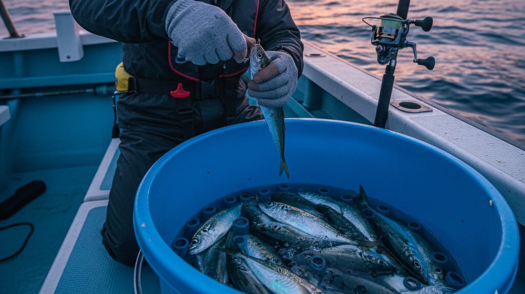 釣具店で購入した活きアジを使う場合は、必ずエアポンプ(ブクブク)付きの活かしバッカンを使用しましょう。また、夏場は水温が上がりやすいため、こまめに水を替えたり、凍らせたペットボトルで水温を調整したりする工夫が、釣果を大きく左右します。