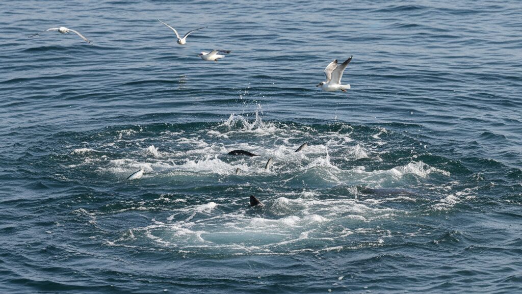SNSの釣果報告などで「波打ち際でボイルが出た!」や「ナブラが湧いた!」という興奮気味のコメントを見かけることがありますが、これはまさにフィッシュイーターがベイトを水面まで追い詰めて捕食しているシーンです。