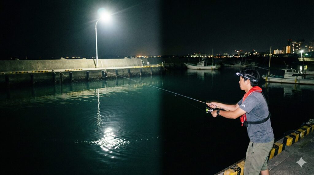 常夜灯の明暗を活かす夜釣りの時間帯と攻め方