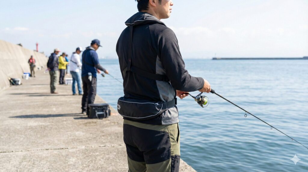 そして、何よりも強調したいのがライフジャケットの重要性です。海でのレジャーを楽しむ上で、ライフジャケットの着用は、命を守るために強く推奨されており、船釣りにおいては法的な義務も存在します。特にテトラ帯や足場の高い護岸では転落の危険が常にあります。「自分は泳げるから大丈夫」という過信は禁物です。海に落ちた際、パニック状態や着衣の重みで自力で浮き続けるのは至難の業だからです。国土交通省の安全基準(桜マーク)に適合したものを必ず選び、自分自身の安全を確保しましょう(出典:国土交通省『ライフジャケットの着用義務拡大』)。