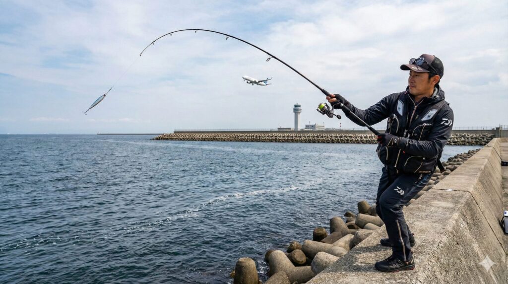 まず神戸空港ですが、ここは空港島という特殊な環境下にあるため、神戸空港島内の釣り可能エリア(南側親水護岸など)は限定されており、立入可能区域を事前確認することが不可欠です。全面的に釣りが可能なわけではなく、指定されたエリア以外での釣りは固く禁じられています。特に保安上の理由から規制が厳しいため、必ず看板の指示を守ってください。釣果の方は、足元から水深が深く、ジグをしっかり沈めて底からしゃくり上げると、予期せぬ大物がヒットすることもあり、夢があるフィールドですね。詳細な攻略法は神戸空港の青物攻略と駐車場情報で予習しておくと安心です。