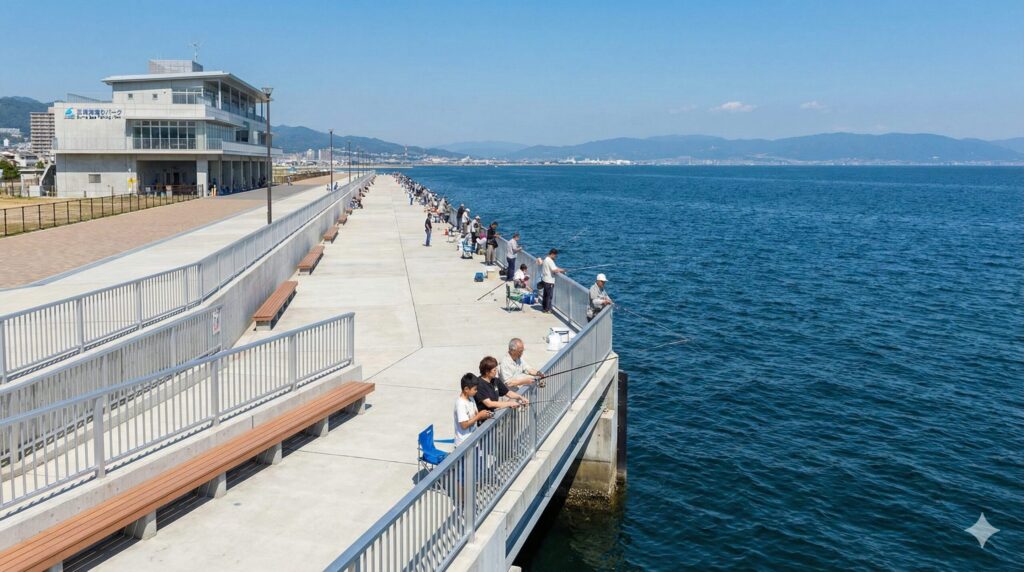 「確実な安全」と「快適な設備」を同時に手に入れたいのであれば、行政や指定管理者が運営する「海づり公園」が最も適した選択肢となります。大阪湾周辺には、初心者から上級者までが満足できるハイレベルな施設がいくつか存在します。その中でも「鳴尾浜臨海公園 海づり広場(西宮市)」と、近年大幅なリニューアルを遂げた「須磨海づり公園(神戸市)」は、特に注目を集めています。