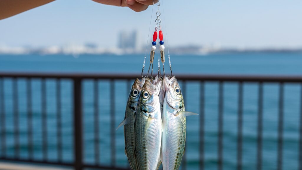 もしサビキ釣り(足元やちょい投げ)で反応がない場合、アジが足元ではなく、沖の底付近にいる可能性を探る戦略です。カゴ釣りに切り替えて遠投し、「沖目の底から2m以内のタナ」を集中的に狙うという方法も実績があるようです。アジは底付近にいることも多いので、タナ取りは重要ですね。