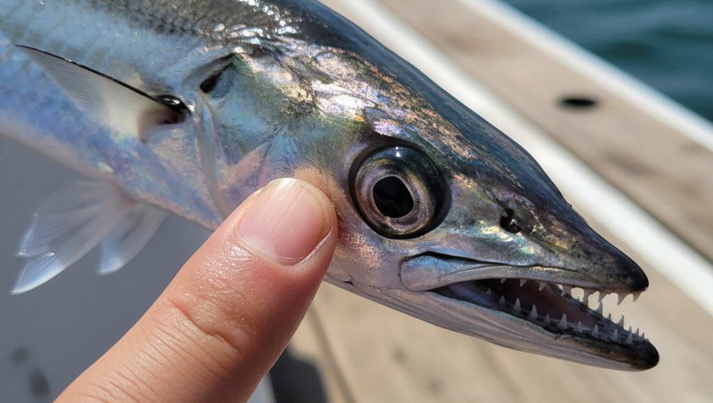 太刀魚を釣り上げた直後、まず最初に直面するのが「どうやって針を外すか」「どこを持てばいいのか」という問題です。太刀魚の歯は、獲物を逃さないために内側に大きく湾曲しており、その切れ味はまさにカミソリそのもの。少し触れただけでも、皮膚はいとも簡単に切り裂かれ、深い傷を負ってしまいます。私自身も初心者の頃、暴れる太刀魚に指をかすめられただけで、なかなか血が止まらず怖い思いをした経験があります。特に大型の「ドラゴン級」ともなれば、その顎の力も相まって、指の神経まで達するような大怪我につながるリスクさえあります。