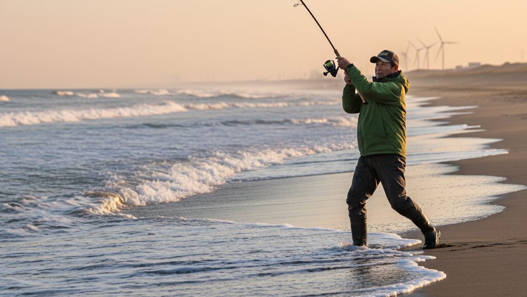 データを見て「北西風・弱(風速2m〜4m程度)」となっていれば、私の中では迷わず「Go」のサインです。ラインメンディング(糸の管理)もしやすく、ルアーの操作性も抜群。まさにベストコンディションに近いと言えるでしょう。逆に、東風(オンショア)が吹く日は、海が荒れやすく、ルアーも飛ばないため、苦戦を強いられることが多いです。風向きひとつで、釣りの難易度は劇的に変わるのです。