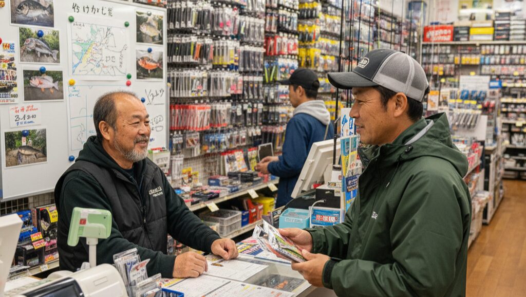そして、買い物以上に価値があるのが情報収集です。レジで支払いをしながら「今朝はどうですか?」「最近どの辺りで上がってますか?」と店員さんに声をかけてみてください。彼らは毎日多くのアングラーと接しており、「昨日の夕方、〇〇周辺で80cmのヒラメが出たよ」とか「今はイワシが入っているから、大きめのルアーがいいよ」といった、ネットにはまだ出ていない鮮度抜群のリアルタイム情報を持っています。私も以前、店員さんのアドバイス通りにルアーのカラーを変えた直後に座布団ヒラメをキャッチした経験があります。地元のプロショップは、単なる物販店ではなく、攻略のための作戦本部のような存在なのです。