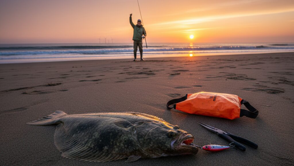 また、「瀬(サンドバー)」の存在も重要です。沖の方で波が盛り上がったり崩れたりしている場所は、そこだけ水深が浅くなっています。その浅瀬(瀬)と深みの境目(ブレイクライン)は、ヒラメが身を潜める絶好のポイントです。私は釣り場に着いたら、すぐにキャストを始めるのではなく、まずは高い位置から海全体を見渡し、離岸流の発生場所や瀬の位置を確認してからエントリーする場所を決めています。広大なサーフだからこそ、漫然と投げるのではなく、魚がいる確率の高い「ピンポイント」を撃ち抜く意識が大切です。