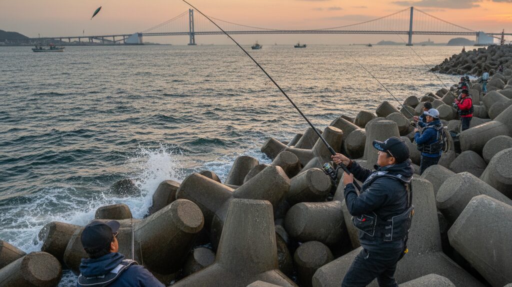 特に「潮目」ができている場所や、潮がテトラに当たって複雑に変化している場所は、プランクトンや小魚が集まりやすく、それを狙う捕食者にとっての絶好のレストランになっています。ただし、このエリアは足場がテトラポッドであり、平らな堤防とは違って常にバランスを取りながらの釣りになります。慣れていないとキャストするだけでも一苦労ですが、その分、攻略できた時の喜びはひとしおです。