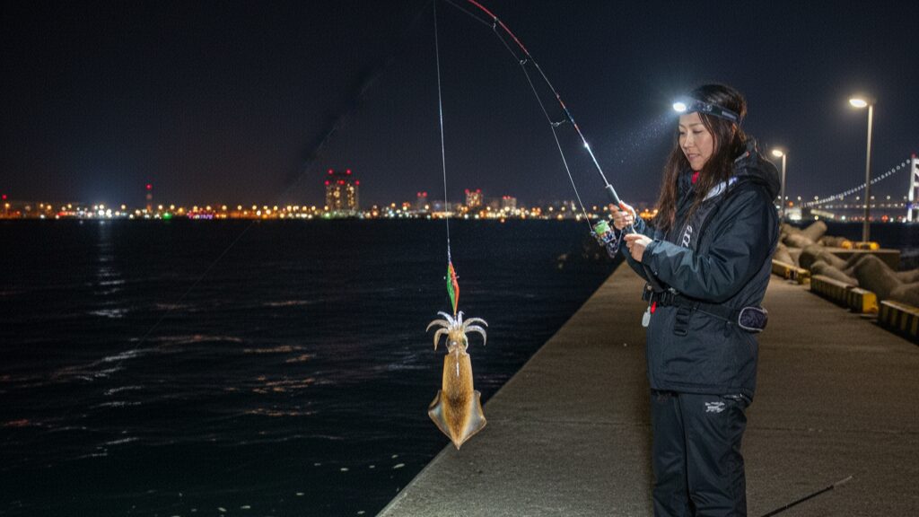 秋になると、青物狙いのジグを投げている横で、エギンガー(イカ釣り師)の姿も多く見られるようになります。データを見ると、特に11月に入ってから「アオリイカの型が良い」という報告が目立っていますね。9月頃の新子(子供のイカ)シーズンから成長し、晩秋にはキロアップと呼ばれる1kg超えの個体も期待できるようになります。明石の潮流に揉まれたアオリイカは身が締まっていて、味も絶品なんですよ。