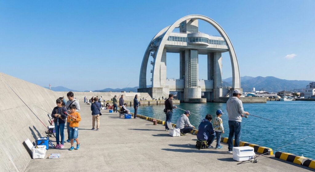 「沼津港はもう全部釣り禁止なの?」と不安になる方もいるかもしれませんが、現時点で釣り人が多く見られるエリアも存在します。比較的釣りを楽しむ姿が見受けられるポイントとしては、「いわゆる“巨大冷蔵庫前”と呼ばれるエリア」「大型水門びゅうお周辺」「通称“タンク裏”と呼ばれるエリア」「狩野川河口付近」などが挙げられます。ただし、これらは法的・永続的に「許可」されているわけではなく、あくまで港湾管理者の管理方針や漁業関係者との協議、あるいは善意による黙認によって成り立っているのが現状です。