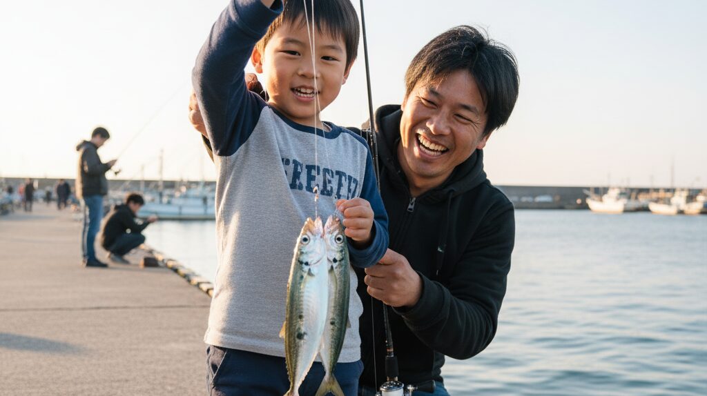 おすすめの時間帯は、やっぱり夕マズメから夜にかけてです。特に夜の19時〜23時くらいに、常夜灯周りや潮通しの良い場所でパタパタと釣れ続く「時合い」が来ることが多いです。足元で釣れない時は、ウキを使った「投げサビキ」や「カゴ釣り」で少し遠投して、沖のミオ筋周辺の深場を狙ってみると、サイズアップが期待できますよ。