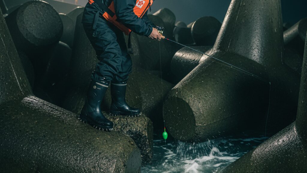 ただし、冬場のテトラ帯や濡れた堤防は非常に滑りやすく危険です。万が一の落水に備えて、ライフジャケット(桜マーク付き推奨)の常時着用と、滑りにくいスパイクシューズの装備は釣り人の義務として徹底しましょう。