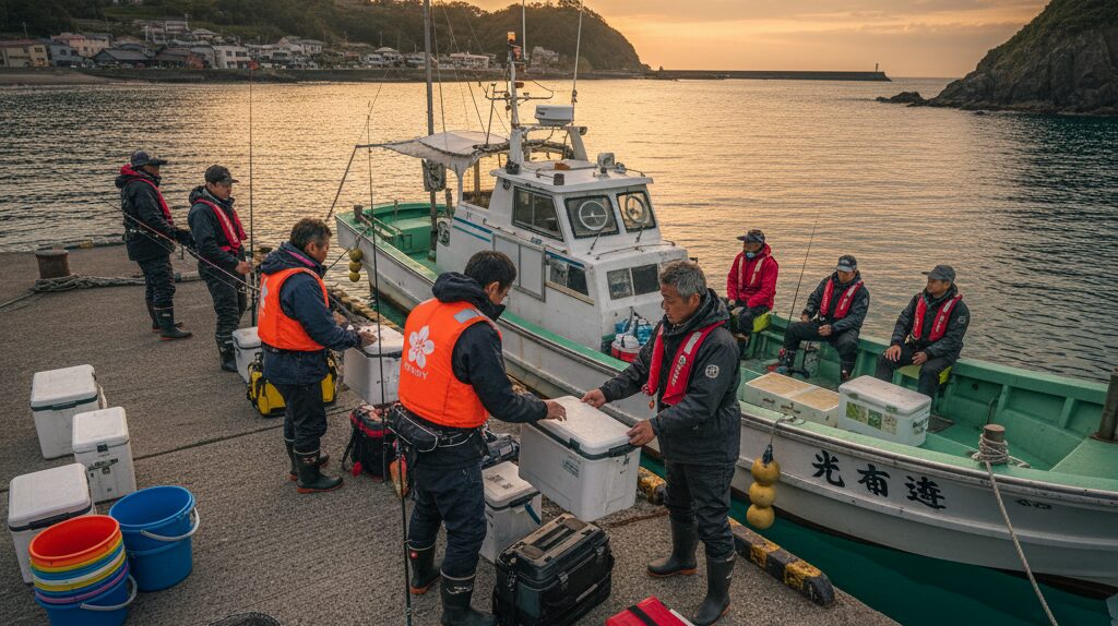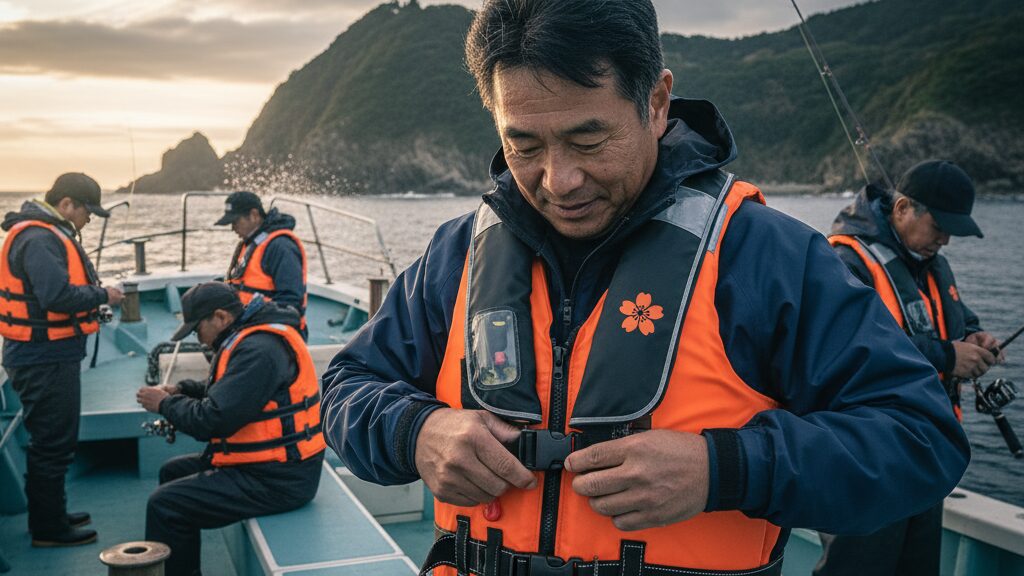 1. 乗船中(船室外): 船に乗っている間(船室の外にいる間)は、国土交通省認定品(桜マーク付き)のライフジャケット着用が法律で義務付けられています。これを持っていない、または着用していない場合、乗船を断られる可能性が極めて高いです。タイプAのものが推奨されます。(出典:水産庁「遊漁船の安全対策について」