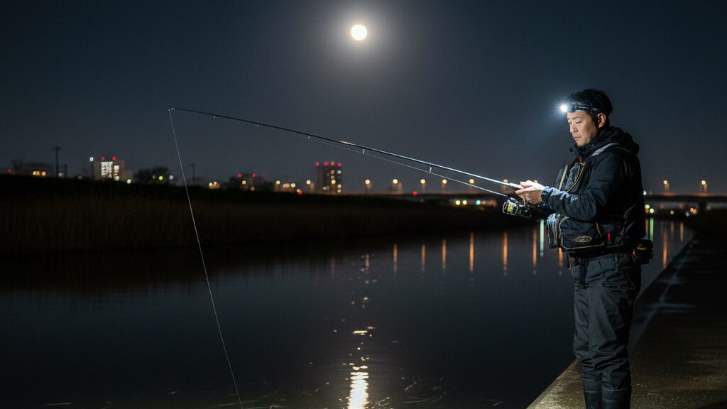 特に夜間においては、橋の上の常夜灯や月明かりによって、水面に明確な「明暗の境界線」が形成されます。シーバスはこの「暗い側」に身を潜め、明るい側から流されてくる無防備なベイトを待ち伏せているのです。攻略のセオリーは、ルアーを上流(明るい側)に着水させ、川の流れに乗せて自然に明暗の境界線へと流し込む(ドリフトさせる)ことです。ルアーが暗闇に入った瞬間に「ガツン!」とバイトがあることが多く、このパターンにハマった時の爆発力は凄まじいものがあります。