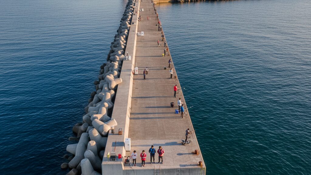 秋田港北防波堤海釣り施設は、単なる釣り場ではなく、国のガイドラインに基づいた「モデル港」です。この施設は、国土交通省が定める「防波堤等の多目的使用に関するガイドライン」に基づき運営されている「釣り文化振興促進モデル港」に指定されています。(出典:国土交通省『防波堤等の多目的使用に関するガイドライン』