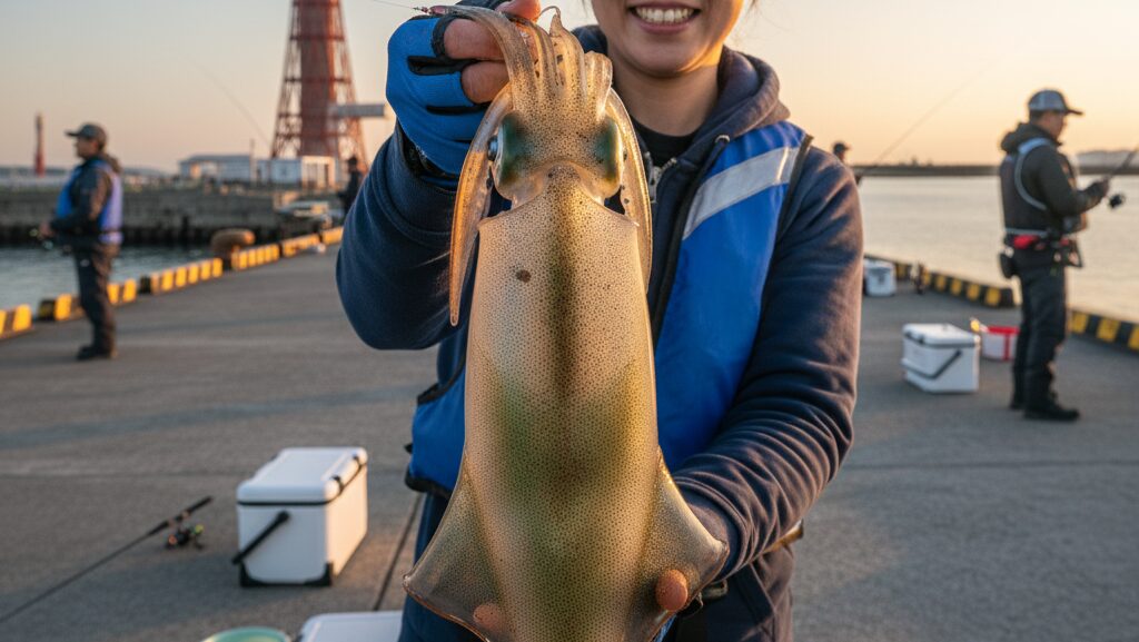 防波堤からのエギングでこのサイズは、まさに「トロフィー級」と言っていいと思います。 しかも、10月26日時点でもまだ大型のジェット噴射が楽しめるとの情報があり、日中でも釣果が上がっているようです。