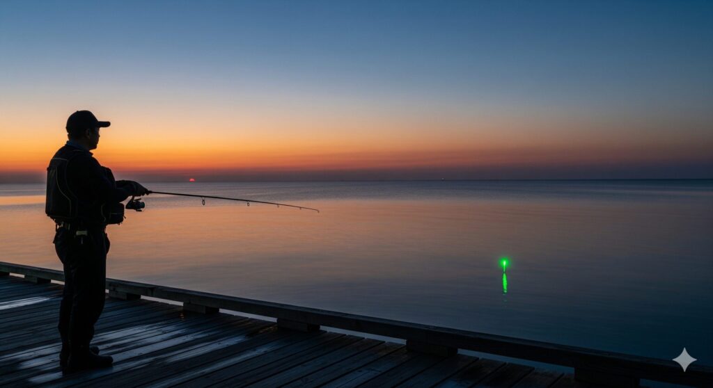 遠投カゴ釣りが最もチャンスが高まる時間帯、それが夕まずめから夜にかけてです。昼間は警戒して沖にいる魚も、暗くなるにつれて岸近くや浅場まで回遊してくるようになります。このボーナスタイムをモノにするための、夜釣り特有の戦略について詳しく見ていきましょう。