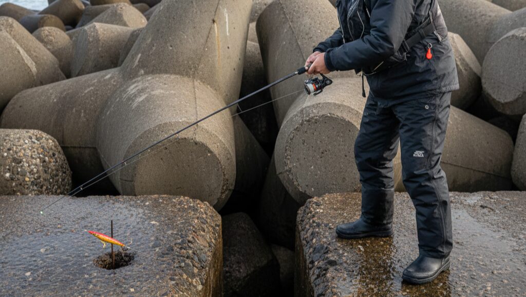 北西からの冷たい季節風が吹き荒れ、水温が低下する冬の那珂湊は、多くの釣り人にとって試練の季節です。アジや青物といった回遊魚は深場や暖かい海域へと去ってしまい、港内は静まり返ります。しかし、そんな厳寒期でも熱い釣りを展開できるのが、テトラポッドの隙間や岸壁の際(キワ)をダイレクトに狙う「穴釣り」や「探り釣り」です。