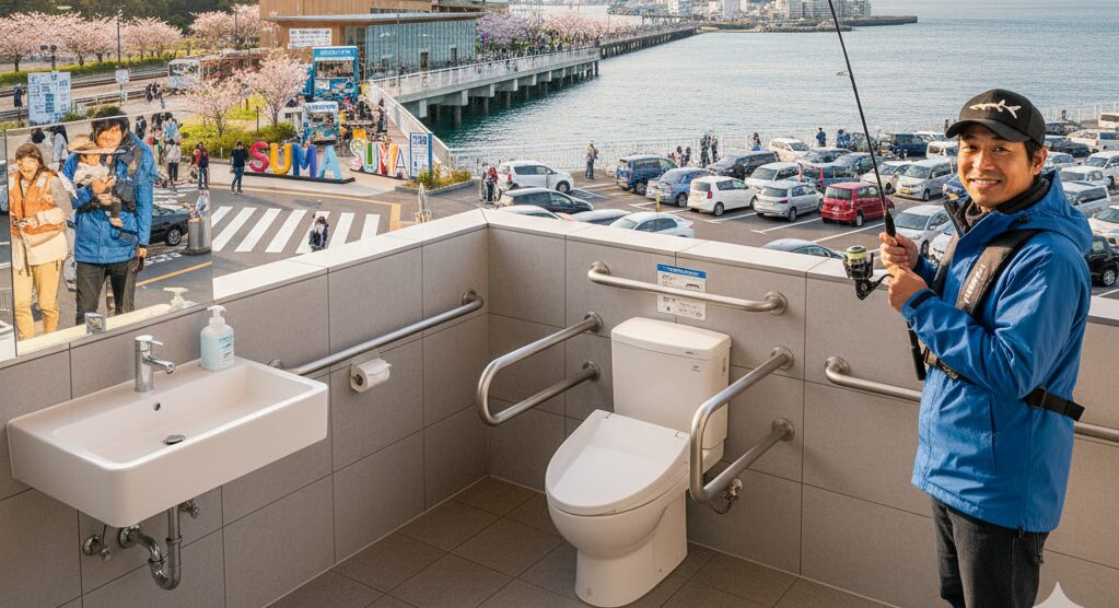 どれだけ魚が釣れる場所でも、トイレが汚れていたり、休憩する場所がなかったりすると、特に女性や子供連れの釣行は快適とは言えません。その点、リニューアルされた須磨海釣り公園は、付帯施設が非常に充実しており、誰もが一日中快適に過ごせる環境が整っています。