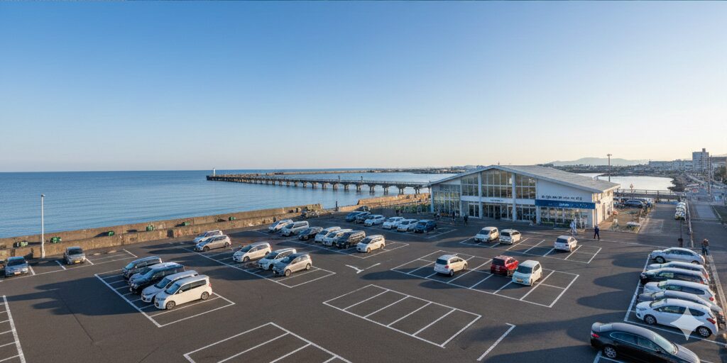 ここには、普通車75台、大型バス4台が停められる無料駐車場が完備されています。多くの人気釣り場が有料化や閉鎖に追い込まれる中、これだけ大規模な駐車場が無料で利用できるのは、館山港の圧倒的な魅力です。
