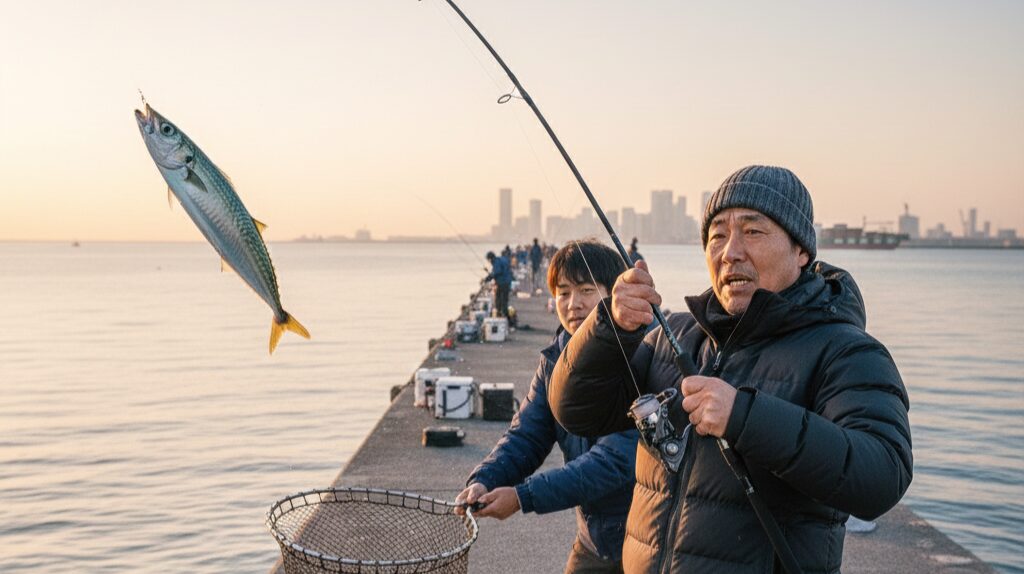 ・底層(海底付近): 20cmクラスの良型アジや、時にはサバが回遊しています。オモリを底までしっかり沈め、少しだけ巻き上げて待つ「底ベタ」狙いが効果的です。