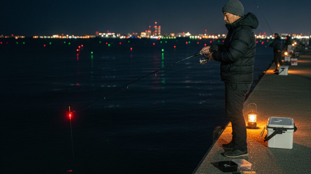 そこでおすすめしたいのが、日本の伝統的な釣法である「電気ウキ釣り」です。赤や緑に光る電気ウキが、暗い海面にポツンと浮かび、それが前触れもなくスッと海中に引き込まれていく瞬間…このドキドキ感は、何度味わってもたまりません。
