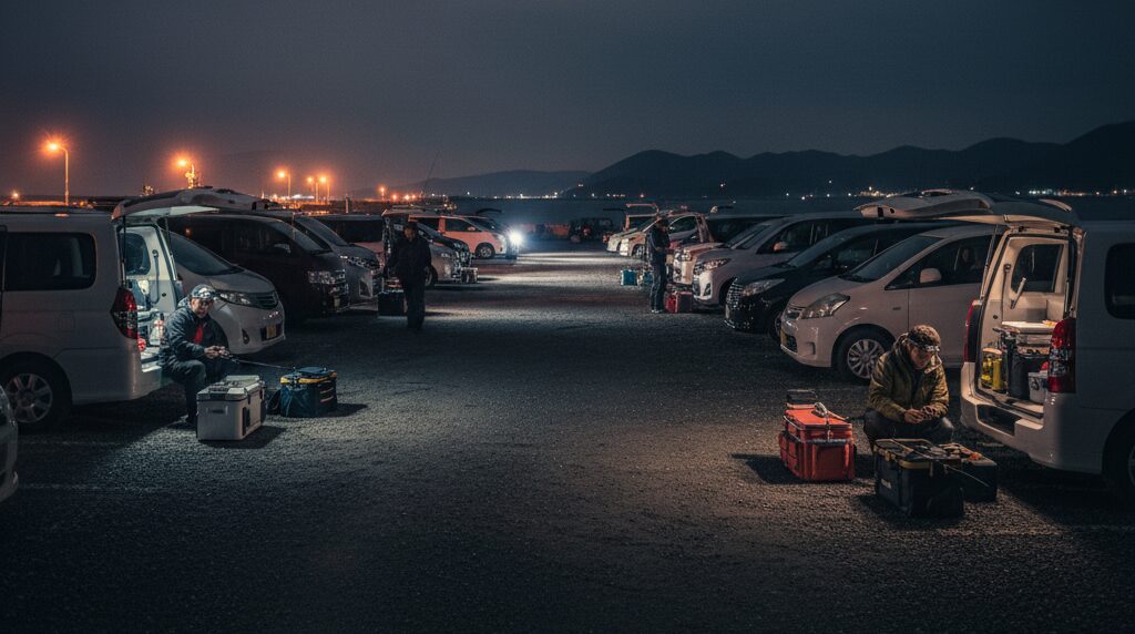 - 前夜入り: 週末などは前日の夜から駐車場で待機するアングラーも多いです。車中泊の準備をしていくのも一つの手です。