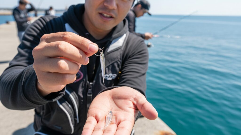- ルアーのサイズを落とす: 30gや40gではなく、10g〜20g程度の小型ジグを使う(スーパーライトショアジギング)。シルエットをベイトサイズに合わせます。