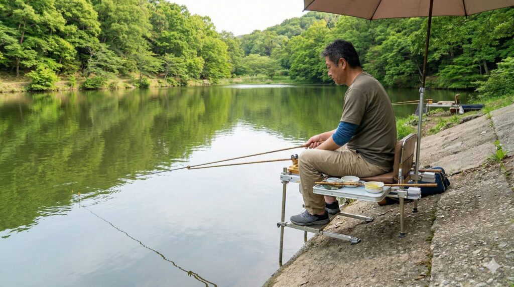 また、釣り台のセッティング時には、護岸のコンクリートを傷つけないよう配慮することも忘れずに。足先に保護用のキャップを付けたり、安定させるために無理な力をかけすぎないことが大切です。特に風越池は貴重な自然遺産の真ん中にあります。私たちが持ち込む道具が、景観や施設を損なうことがあってはなりません。機能的で、かつ環境にも優しいセッティングを心がけたいものですね。ヘラブナ釣りの魅力をもっと知りたい方は、こちらのヘラブナ釣りはつまらない?その理由と魅力の記事もあわせて読んでみてください。きっと新しい発見があるはずです。