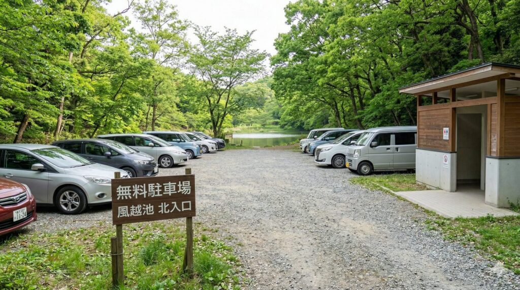 遠方から車で訪れる釣り人にとって、最も気になるのが「駐車スペース」と「トイレ環境」ではないでしょうか。風越池の魚釣り場がこれほどまでに支持されている一つに、駐車場とトイレがしっかりと完備されているという点があります。しかも、これらがすべて無料で利用できるというのは、お財布にも優しくて本当にありがたいですよね。池のすぐ近くには数台が停められる駐車スペースがあり、週末ともなれば朝早くから釣り人の車で埋まることも珍しくありません。