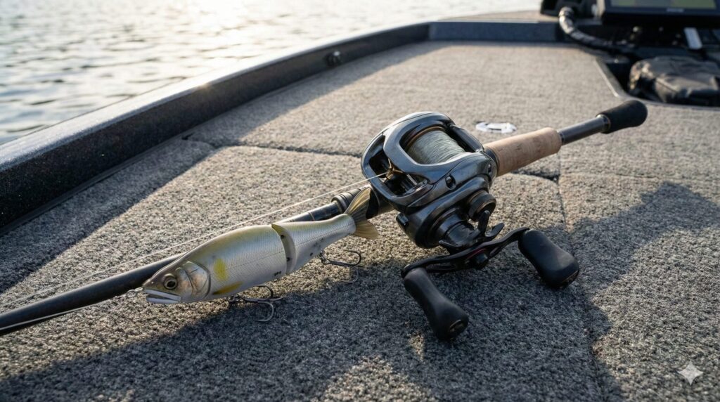「ボートシーバスに興味はあるけど、専用の重厚なタックルを持っていない」という方も多いのではないでしょうか。実は、Realのガイドの素晴らしいところは、普段ブラックバスフィッシングで使っているタックルをそのまま流用できるというハードルの低さにもあります。特に琵琶湖などのビッグレイクで使うような、6.2ft〜7ft前後のMH(ミディアムヘビー)からH(ヘビー)クラスのバスロッドは、Realでのスタイルに驚くほどマッチします。シーバス専用ロッドよりも張りがあるバスロッドは、ストラクチャーの奥へ正確にルアーを撃ち込んだり、ジャークベイトをキレ良く動かしたりするのに最適なんですよね。